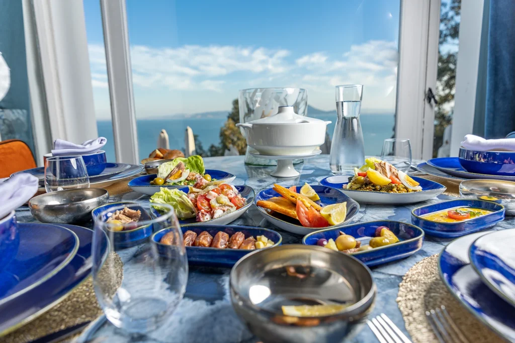 در سیدی بو سعید: غذاهای سنتی با منظره دریا